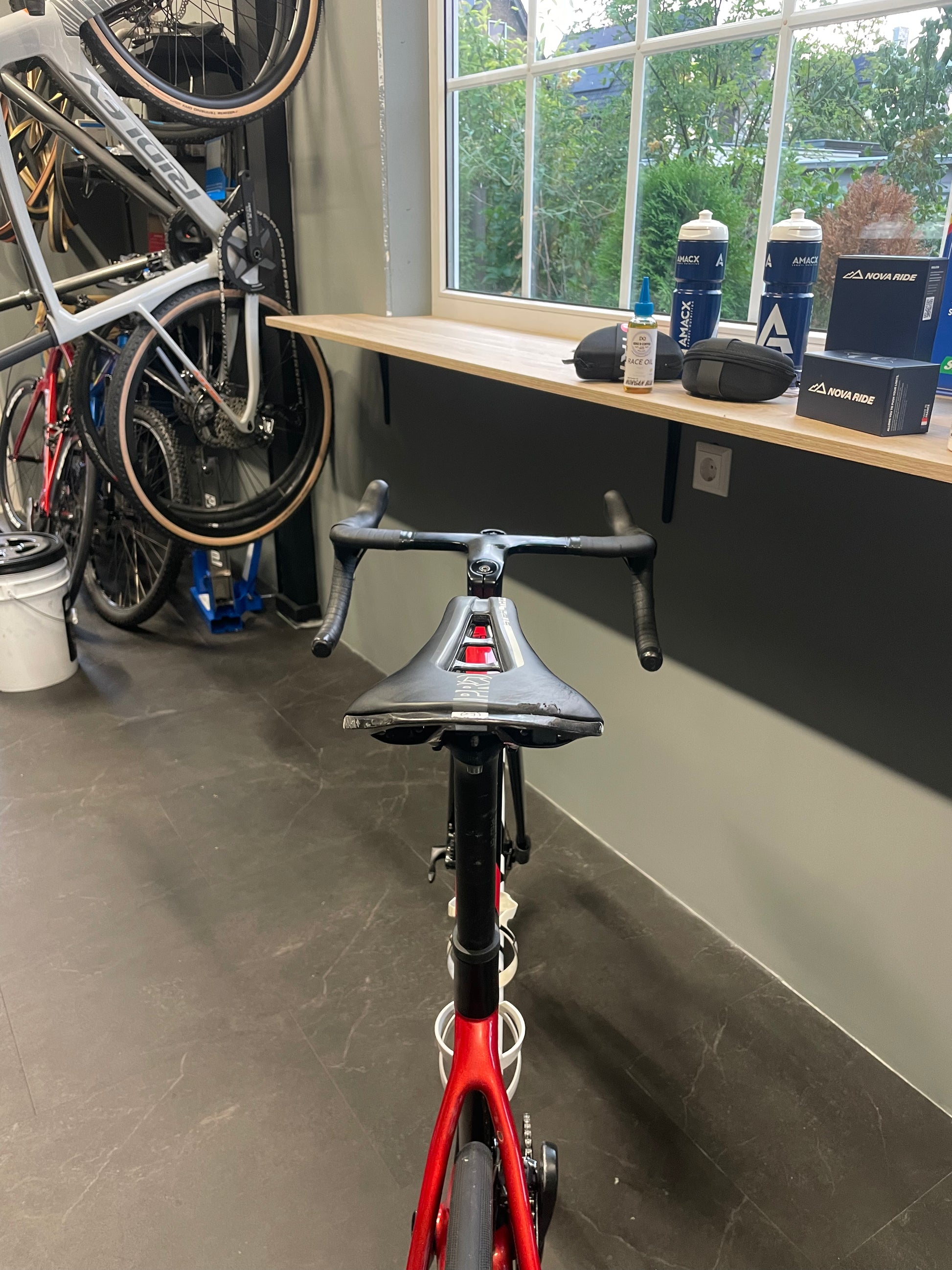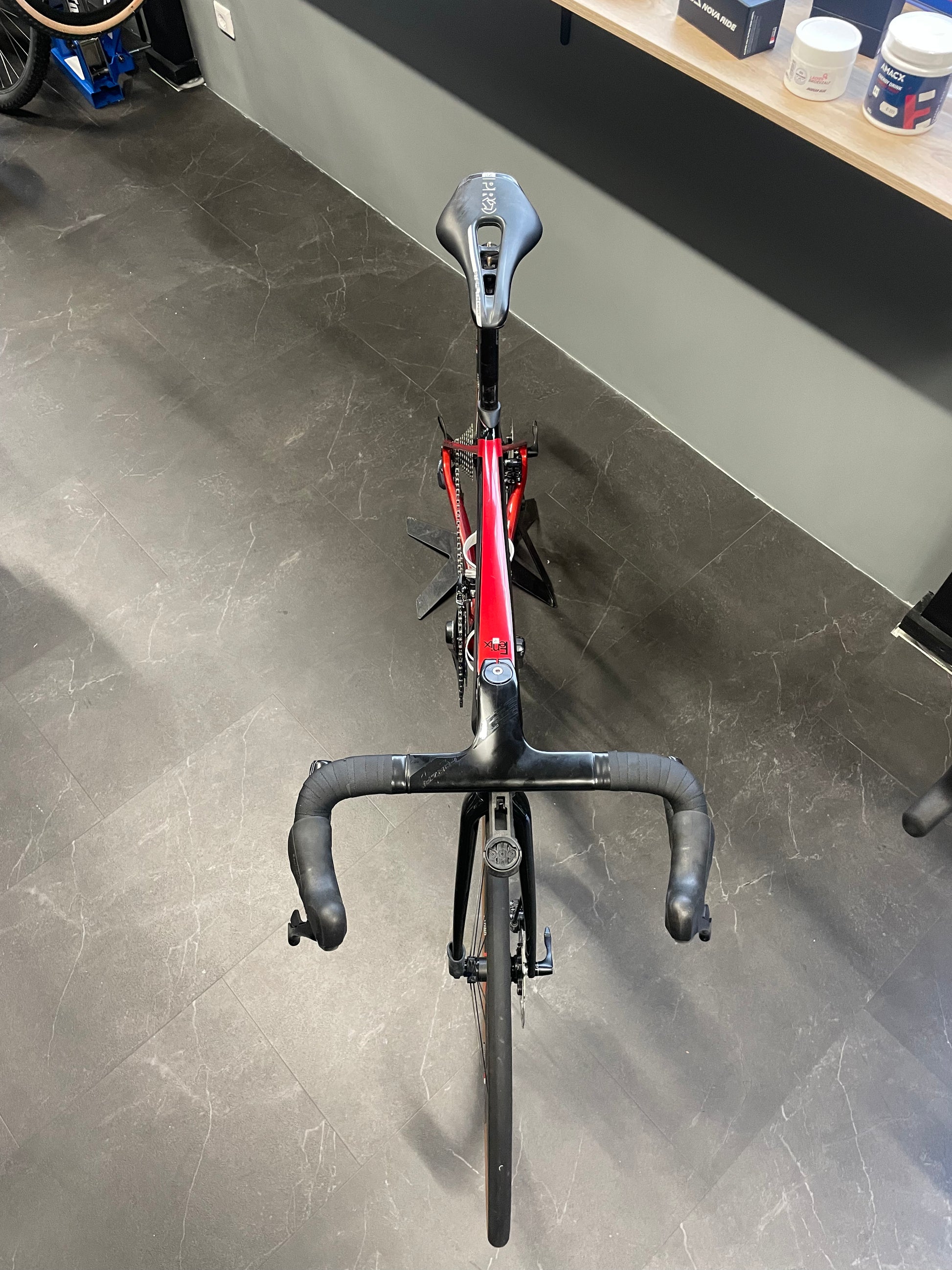 For sale: Ridley Fenix SLIC endurance pre-ownedroad bike in size S (Small), in good condition. This sleek bike in black with red accents is designed for both comfort and speed, making it ideal for long-distance rides, serious training, or fast-paced touring.