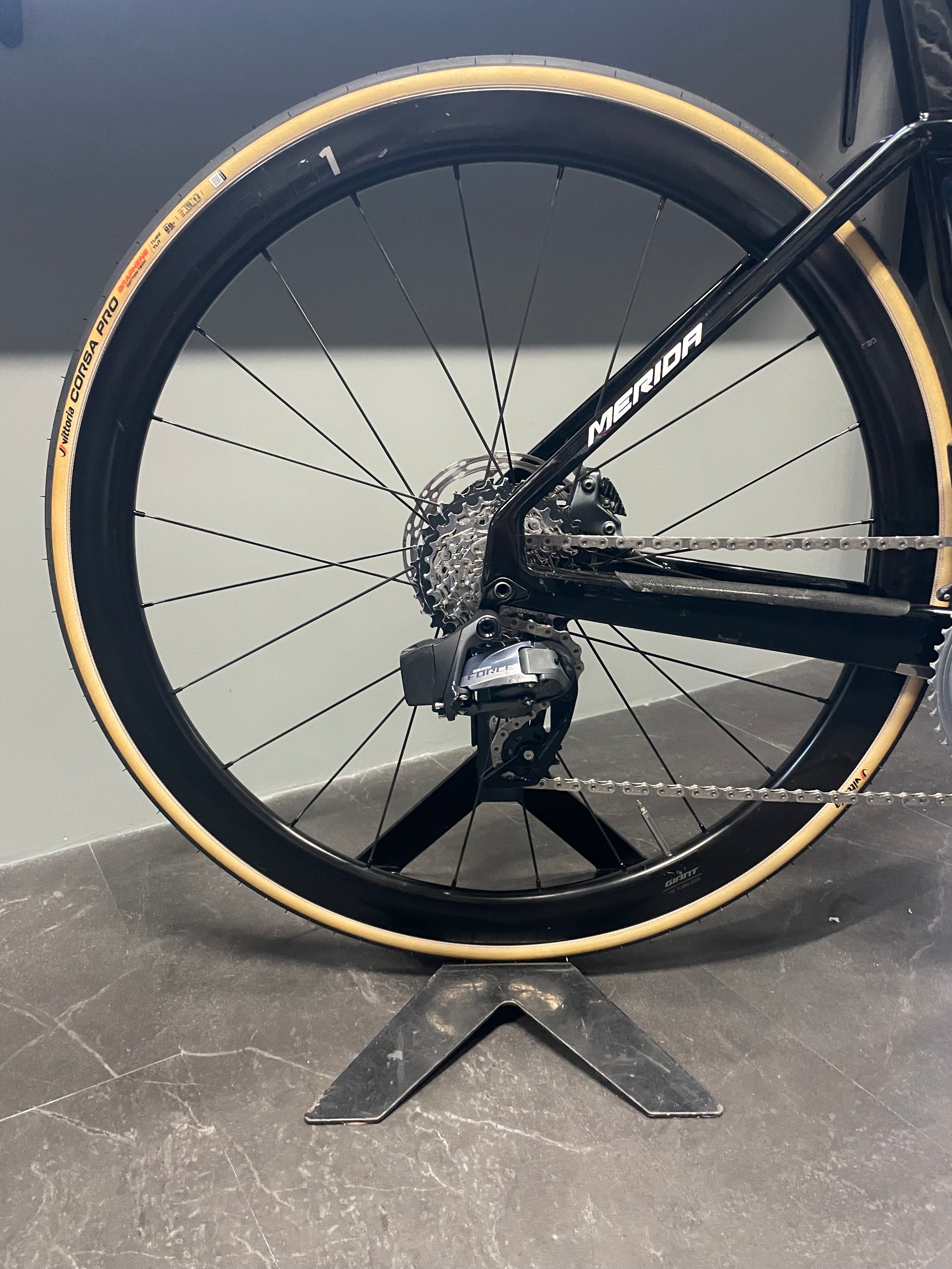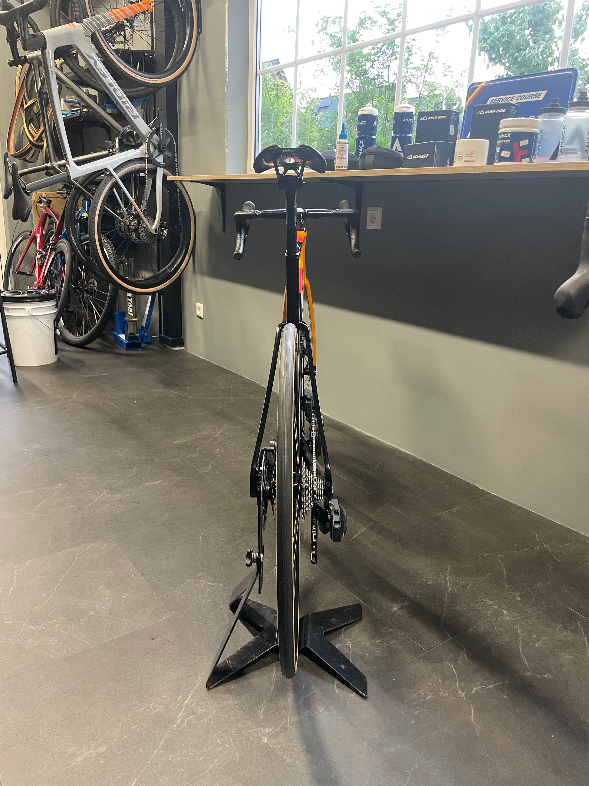 Outfitted with a SRAM Force eTap AXS 12-speed wireless electronic groupset, this bike offers crisp, instant shifting with a clean, cable-free setup. The drivetrain is smooth, reliable, and built for demanding riders.